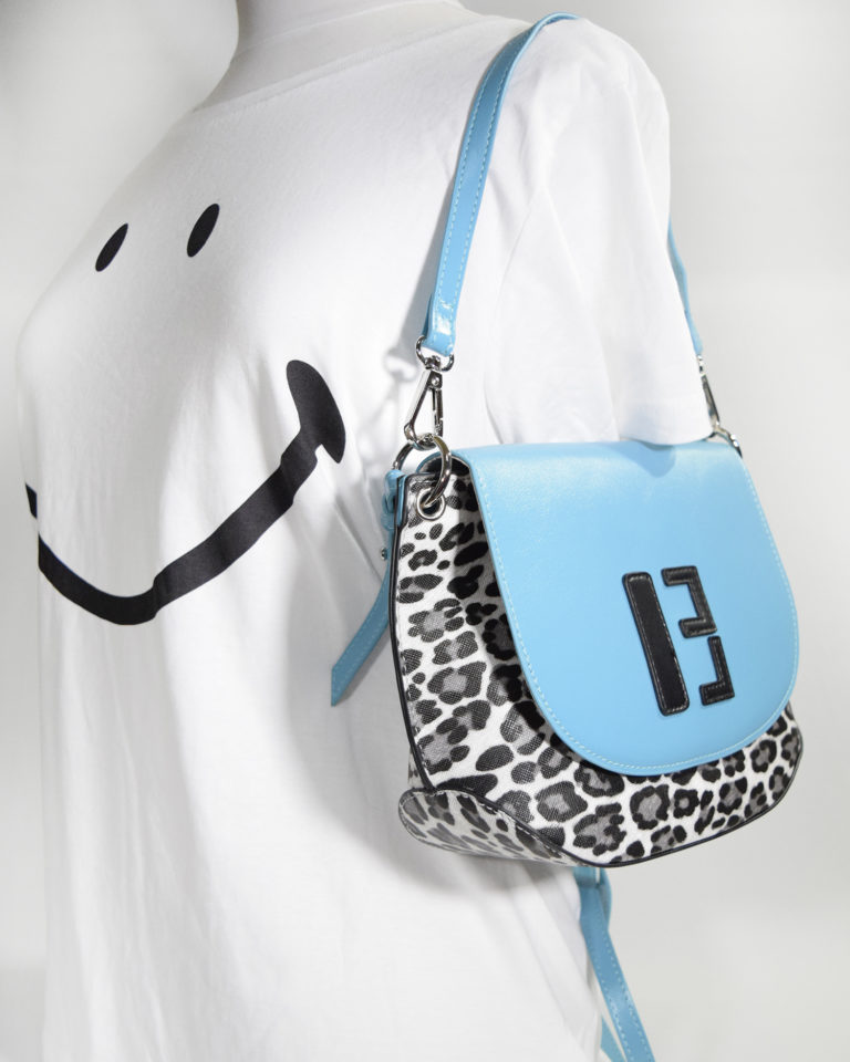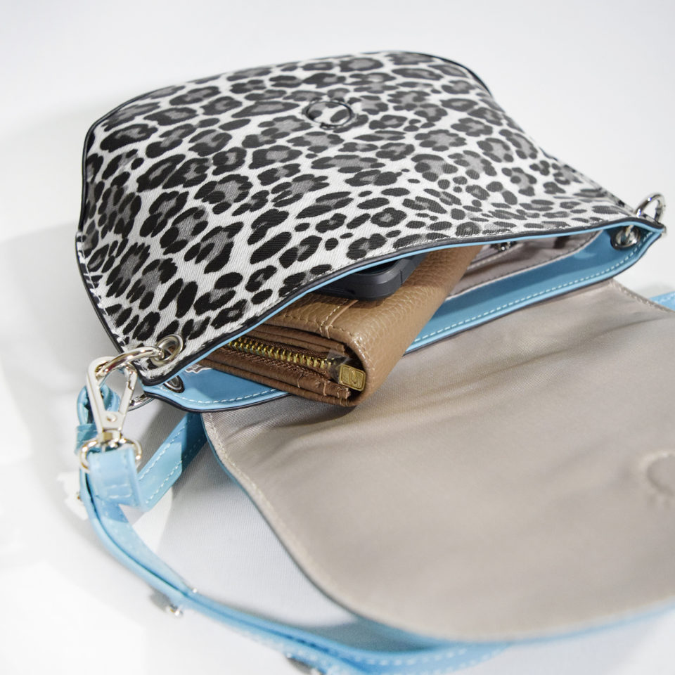 ワンポイントにレオパード柄のフラップショルダー
