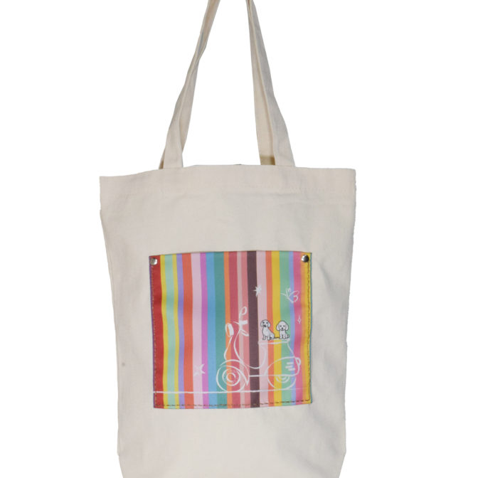 このマイバッグは、中身が透けないぎりぎりの薄さのキャンバス地を使用し、プライバシーを気にせずにご使用いただけます。柔らかなキャンバス素材は、持ち手のフィット感も抜群で、長時間の使用でも疲れ知らずです。さらに、外付けポケットにオリジナルにデザインされたかわいい柄を使用。それぞれ動物をモチーフに7色カラーを意識したカラー展開になっています。