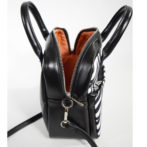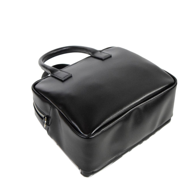 長財布まで入るサイズでミニバッグのスクエアボストン型。開口部のファスナーは横の中央部まで下げられるので大きく開いて荷物の出し入れも簡単。