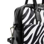 なんにでも合わせやすいブラックのバッグ、ベーシックになりがちですが、ポリエステルのダブルスエード生地にゼブラプリント、DOGCATのワンポイントが大人かわいいアイキャッチ抜群のデザインです。