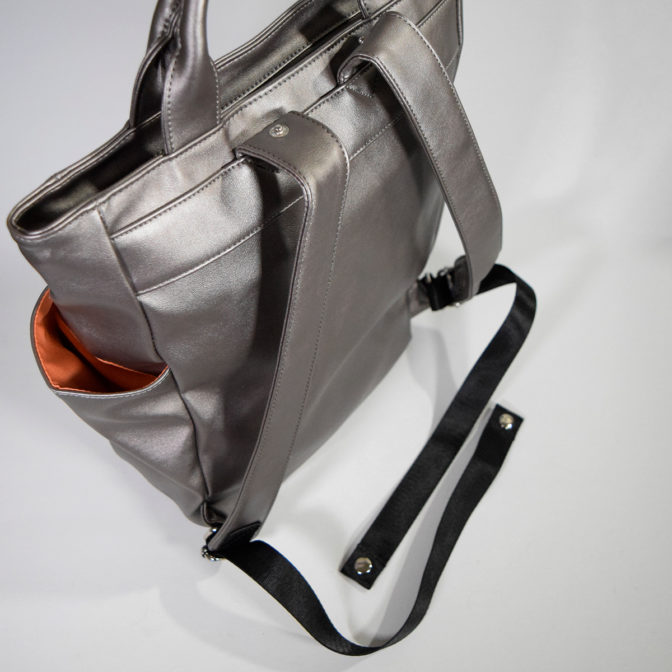 裏面にリュック用のベルトを付けて短いときは50cmでワンショルダーとして、長いときは70cmでリュックとして使用できます。