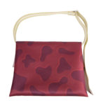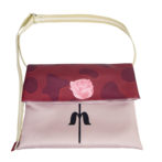 ワインベースにカウ柄を施した表に、クラックのかかったピンクベースと花の配色は大人カジュアルの仕上がりです。