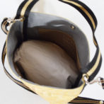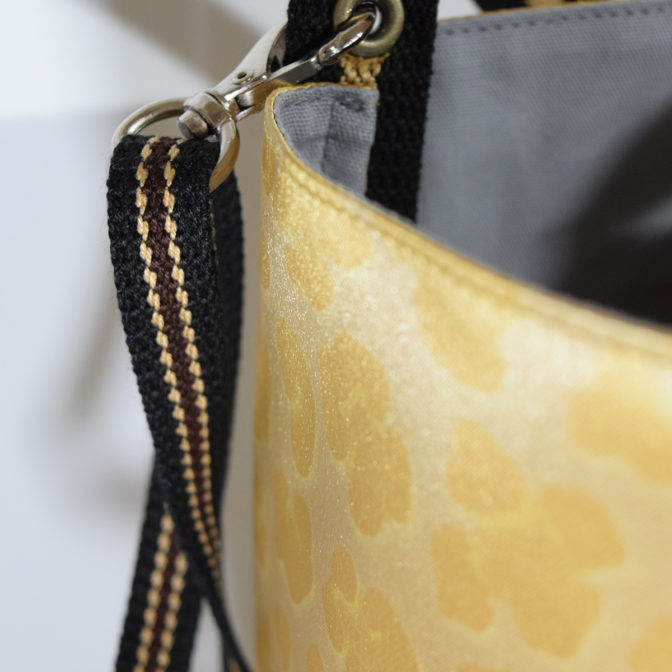 98cmのラインテープをぐるりと使い、10cm底マチをつけたことで自立するバッグになりました。シンプルなつくりですが、少し縦長のきれいなバケット型のフォルムを出すことができました。