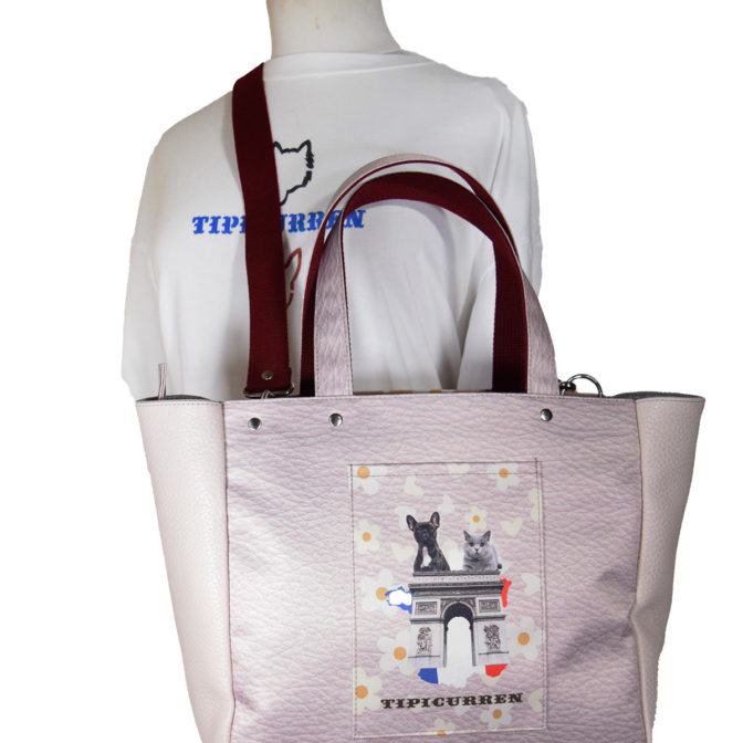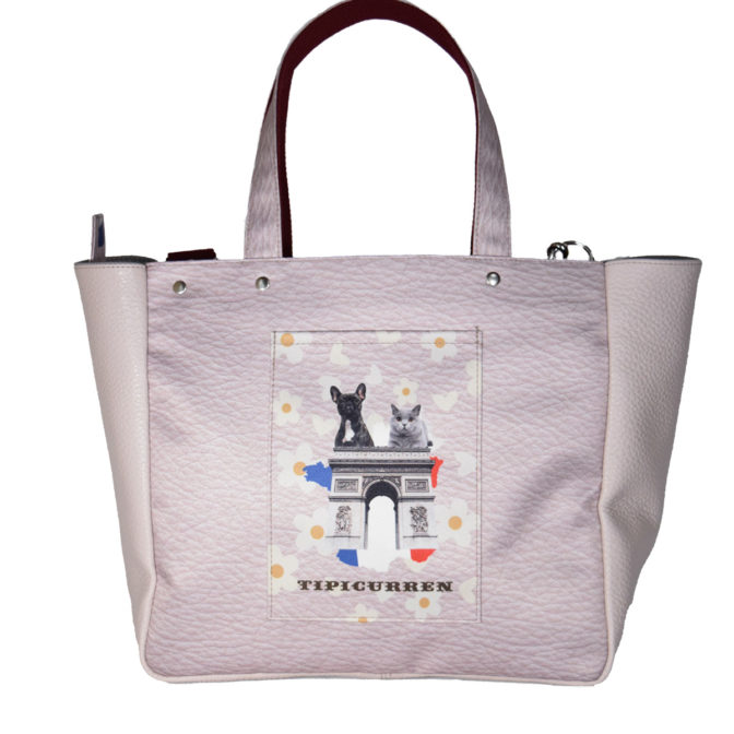 ティピィカレンのシュリンク牛革使ったPARIS柄のトートバッグ。