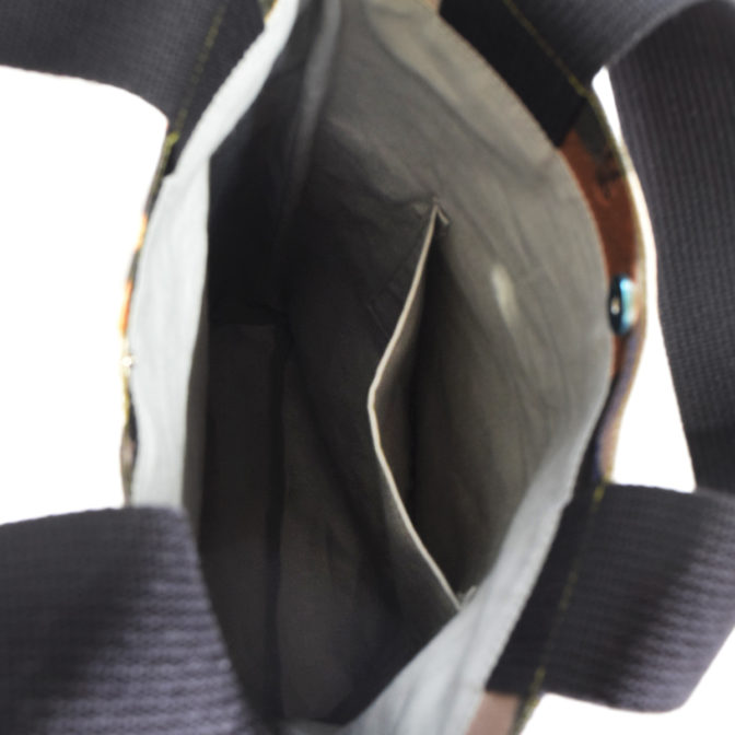 インテリアファブリックにいろんな柄をデザインしカラフルで、こんな柄見たことない、楽しくなるバッグに仕上げています。また見た目からは驚くほどの軽量な素材なので、長時間の持ち運びも疲れにくく、使い勝手抜群です。